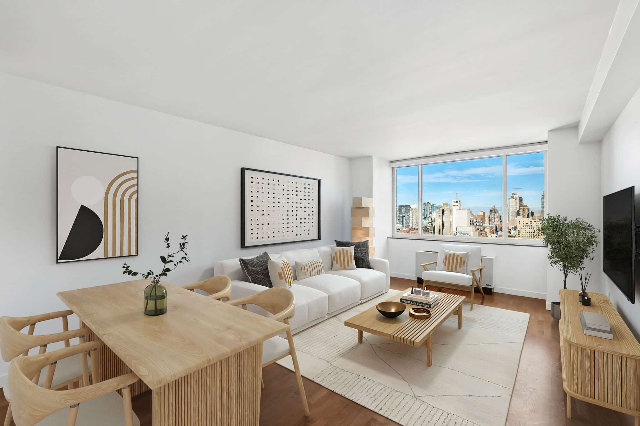 Psychology of the Sale: A designer knows how to create a “flow” that guides the viewer’s eye toward the home’s best features, like a fireplace or a Manhattan skyline view.